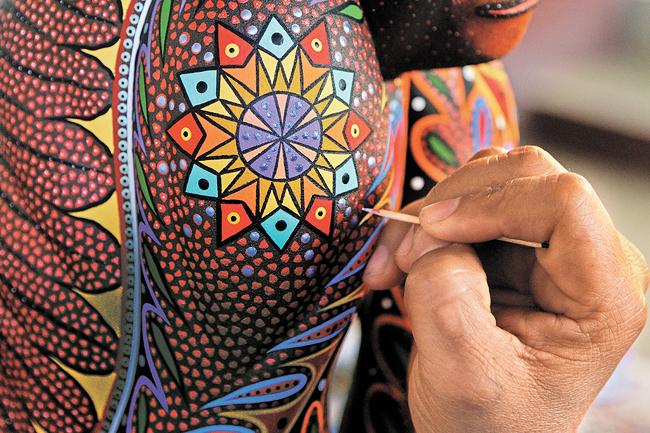 “El xoloitzcuintle es mi pieza favorita y también es una de las más pedidas en el taller; no sé porqué, pero le gusta mucho a los turistas. Inicié con esta actividad a los 12 años y ahora, a mis 30, me dedico de lleno a la creación y diseño de alebrijes”, confiesa mientras concentra sus esfuerzos en lograr una curvatura singular en las patas de su obra: quiere proyectar la sensación de que su pieza se encuentra al acecho.